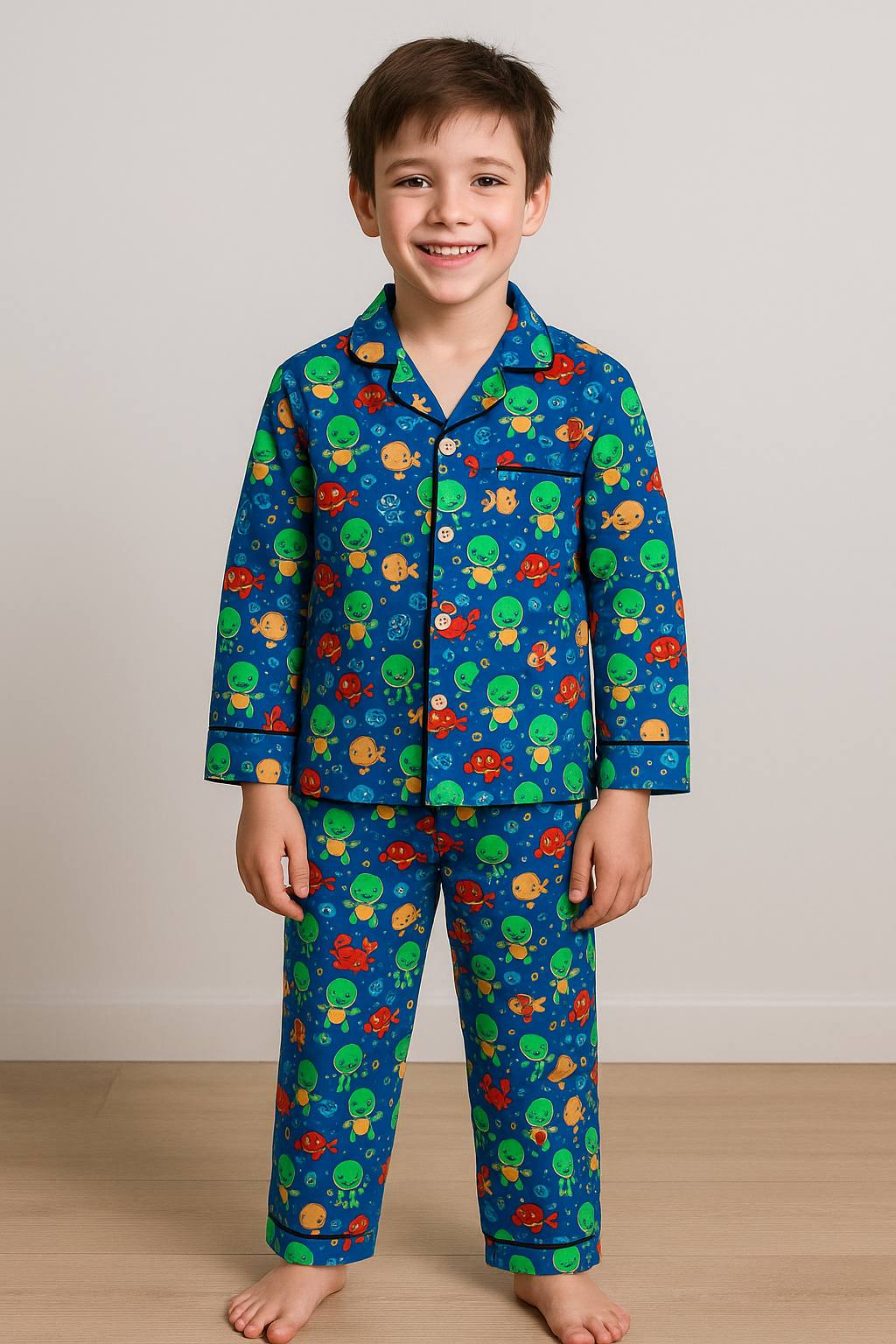 Print: Multicolor aquatic theme (octopus, fish, crabs, bubbles)