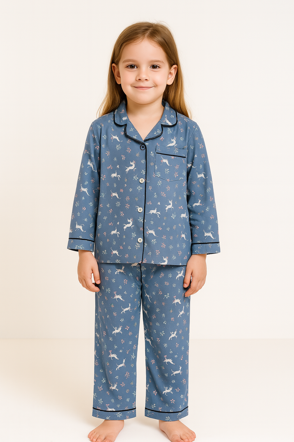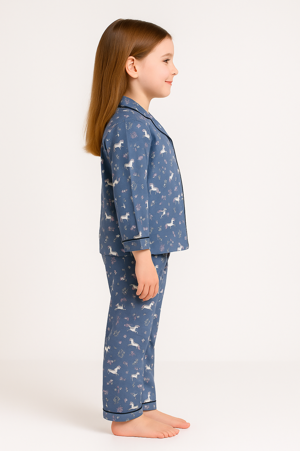 Wrap your little one in a world of magic with our Unicorn Dreams Night Suit, made from feather-soft and flowy rayon fabric. With delicate unicorn and floral prints dancing across a calming blue base, this pajama set is made for peaceful nights and starry-eyed dreams.